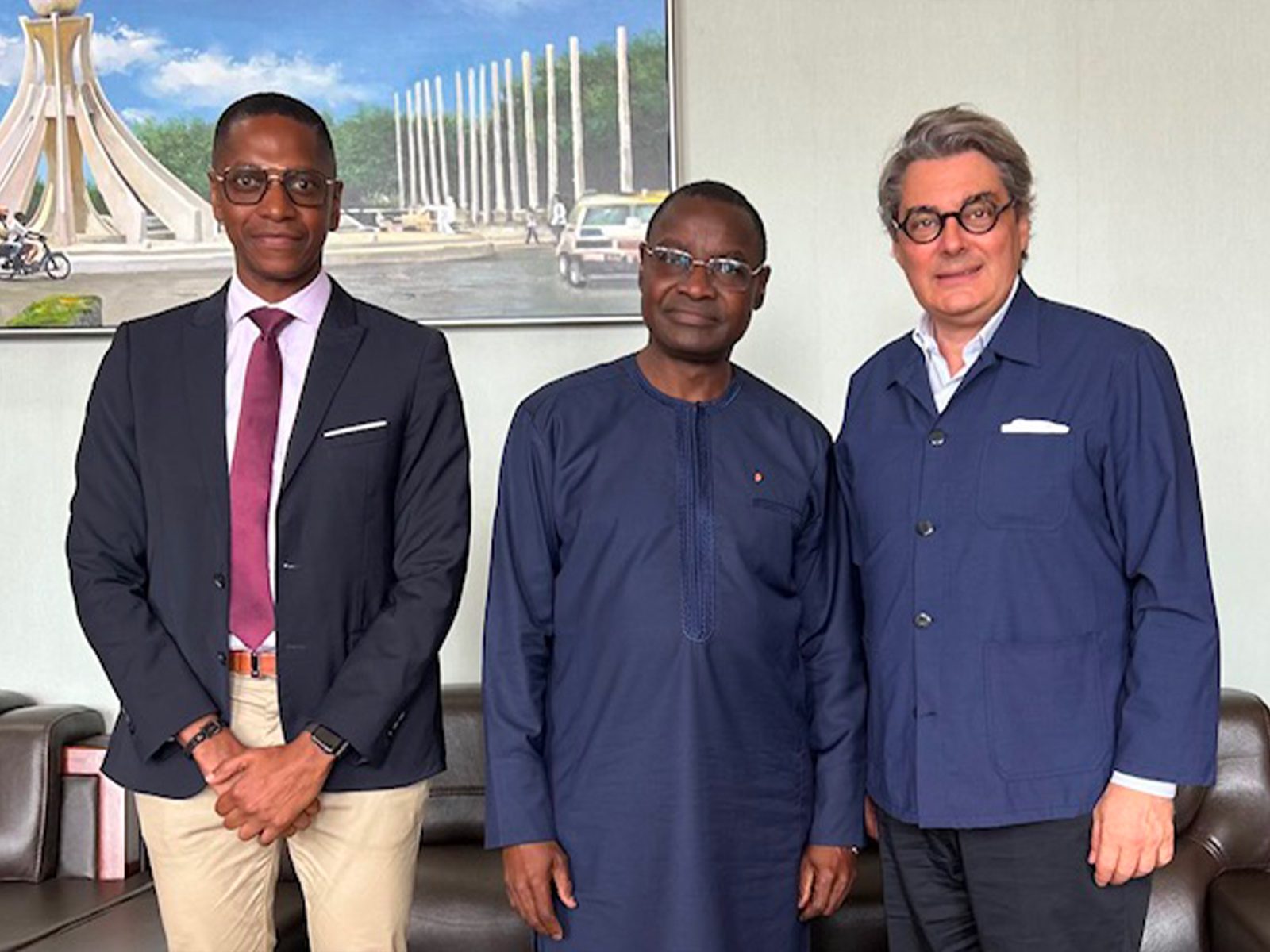 (De gauche à droite) M. Cédric Otse-Mawandza, Chef de Mission ; Professeur Moustafa Mijiyawa, Ministre de la Santé, de l’Hygiène publique et de l’Accès universel aux soins de la République togolaise ; M. Richard Amalvy, Directeur général de la Fondation, © Fondation Brazzaville.