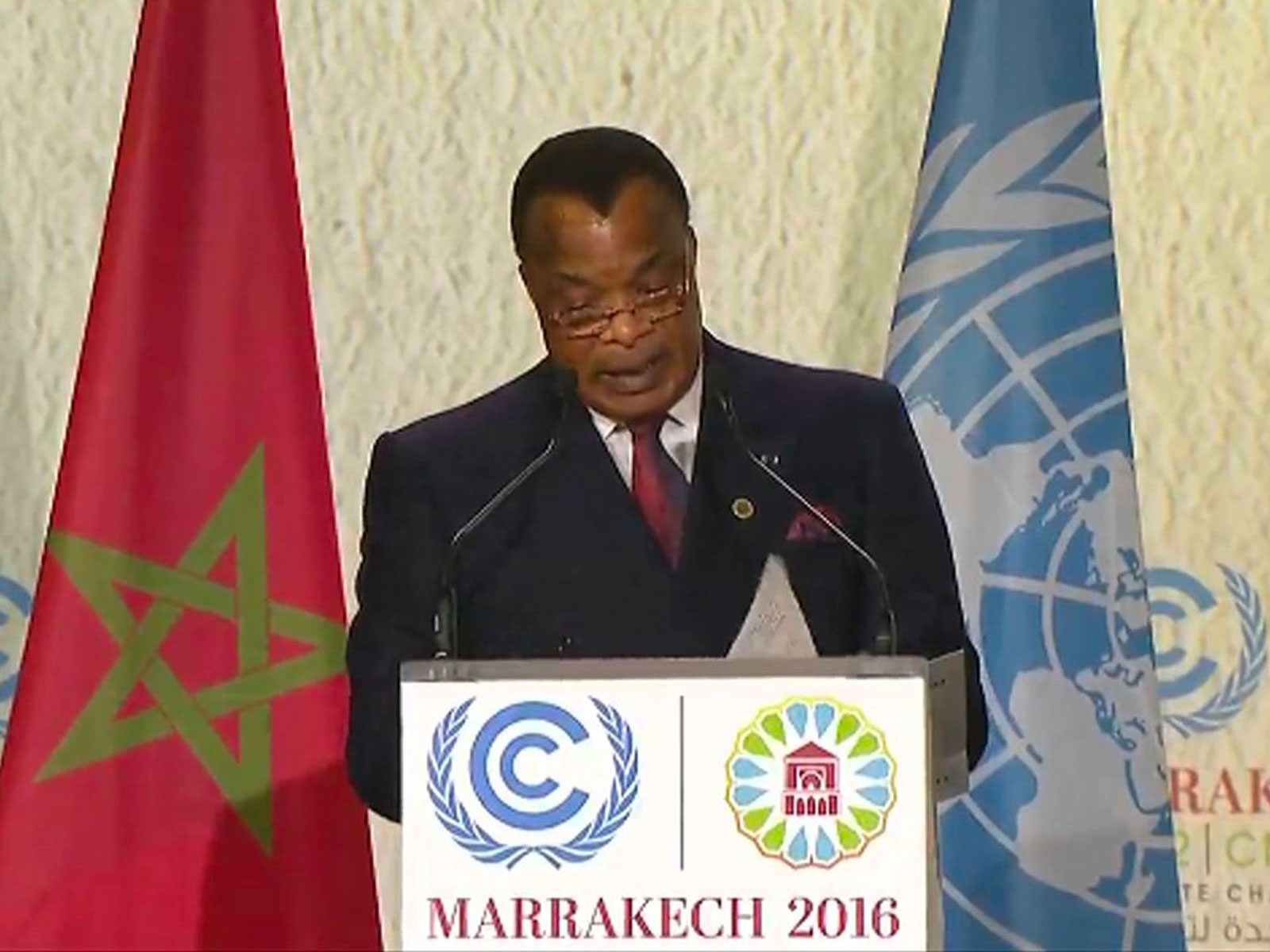 Légende : Le Président de la République du Congo à la COP22 le 16 novembre 2016 à Marrakech.