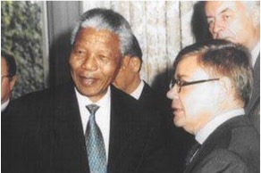 Jean-Yves Ollivier avec Nelson Mandela pendant la transition post-apartheid en Afrique du Sud.