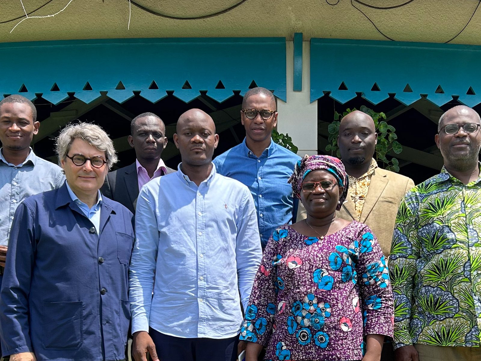De gauche à droite : Dr Christ Kossivi, Pharmacien à la DPML ; M. Richard Amalvy, Directeur général de la Fondation Brazzaville ; M. Abalo Mani-Badang Badaki, Ingénieur biologiste ; Dr Dalkoi Lamboni, Directeur Général p.i. de la DPML ; M. Cédric Otse-Mawandza, Chef de Mission à la Fondation Brazzaville ; Dr Solim Aleika, Juriste à la DPML ; Dr Maheza Agba chef division Medicament à la DPML ; Pr Professeur Amari Antoine, Docteur en Droit et Réglementation pharmaceutique, © Fondation Brazzaville.